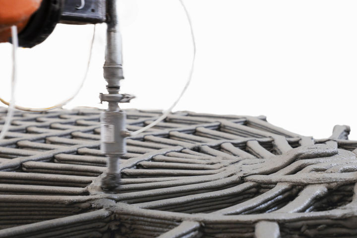 The toolpath design of the structure derives from a structurally optimised configuration of ribs selected through a multiobjective optimisation algorithm. The toolpath follows an alternation between printing trajectories and travel motions.